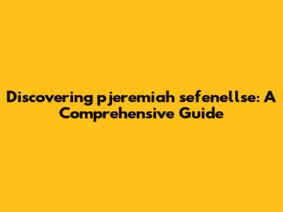Discovering Pjeremiah Sefenellse: A Comprehensive Guide