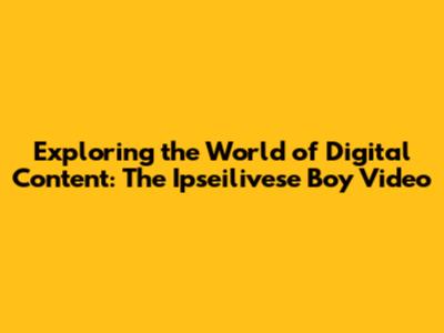 Exploring The World Of Digital Content: The Ipseilivese Boy Video