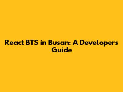 React BTS In Busan: A Developer's Guide