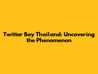 Twitter Boy Thailand: Uncovering The Phenomenon