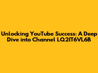 Unlocking YouTube Success: A Deep Dive Into Channel LQ2IT6VL6B